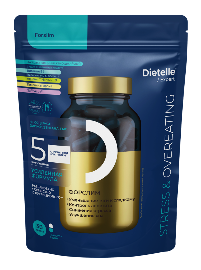 Если у вас есть другие причины набора веса, такие как стресс, инсулинорезистентность, нарушение пищеварения или сна, мы предлагаем уникальный комплекс — блокатор аппетита, разработанный совместно с нутрициологом. Форслим Dietelle включает: