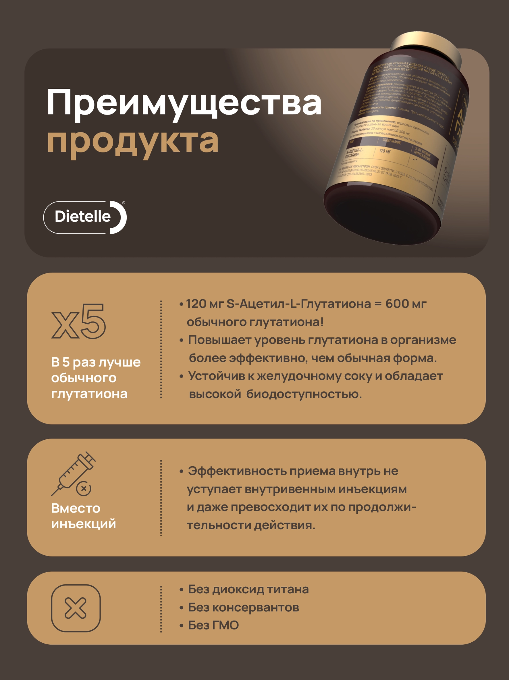 В отличие от L-глутатиона, форма S-Ацетил-L-Глутатион обладает большей биодоступностью