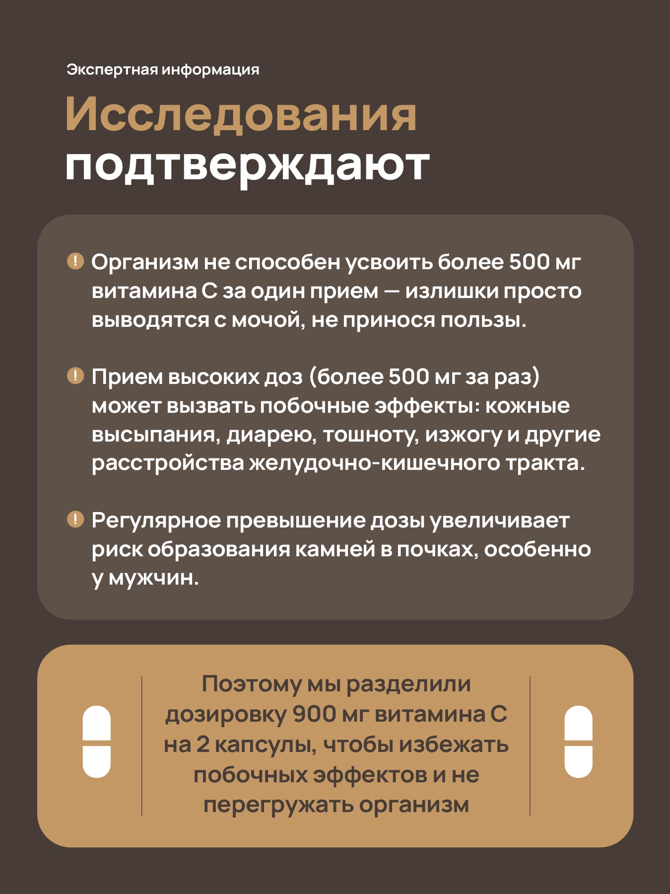 Не вызывает почечных осложнений, как обычная аскорбиновая кислота