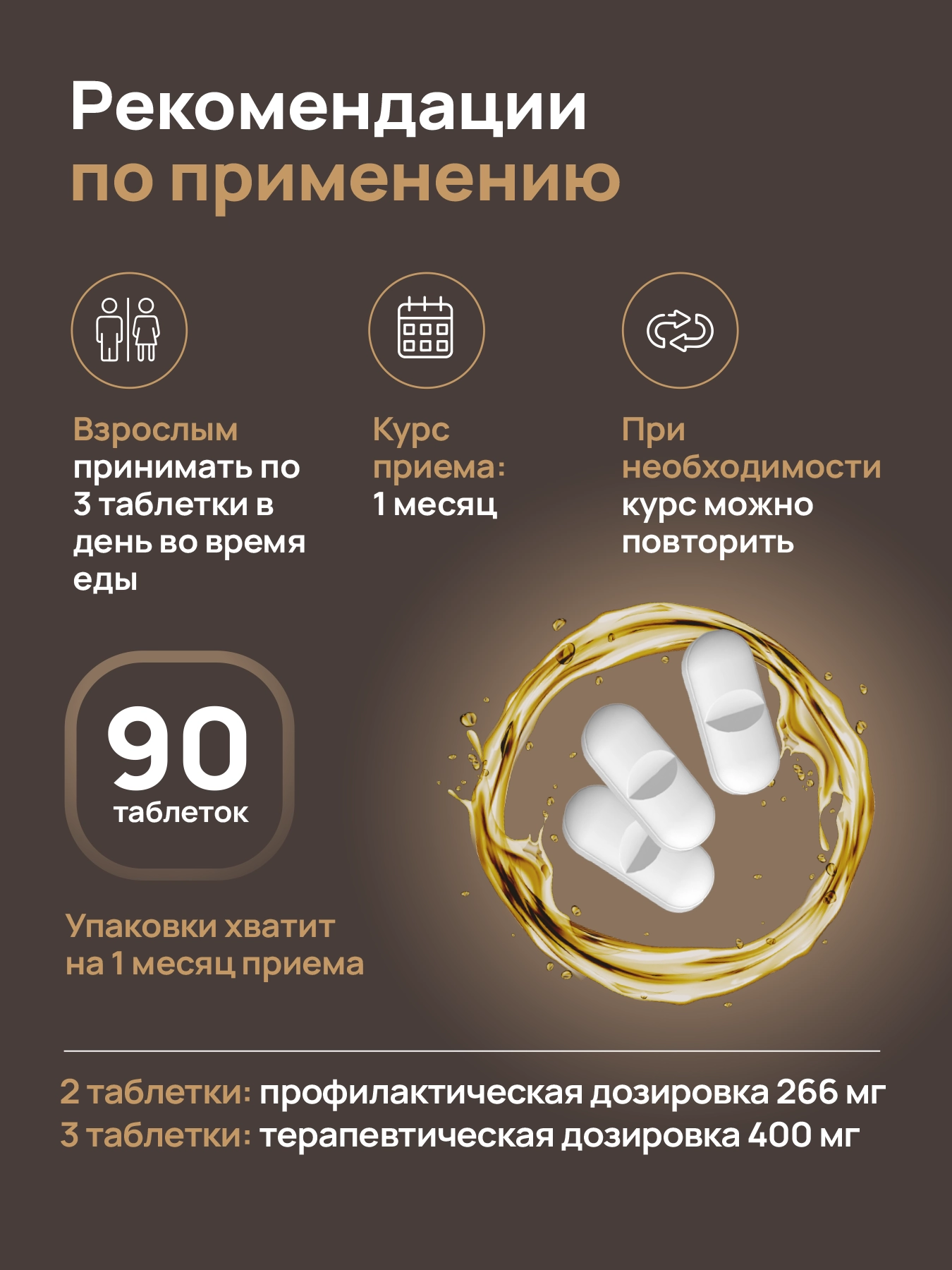 Взрослым принимать по 3 таблетки в день во время еды