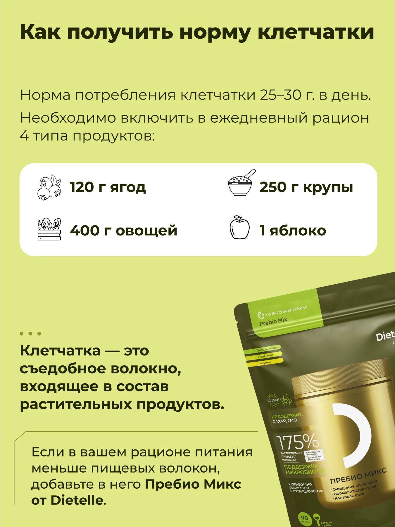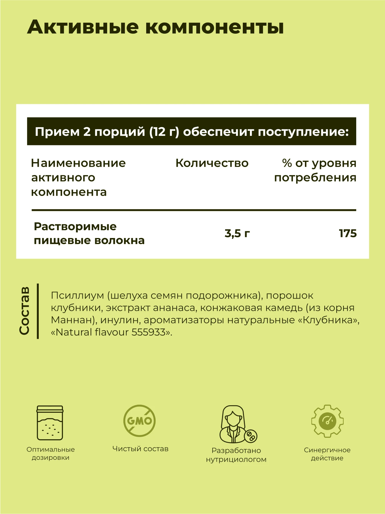 - 175% растворимых пищевых волокон в одной порции