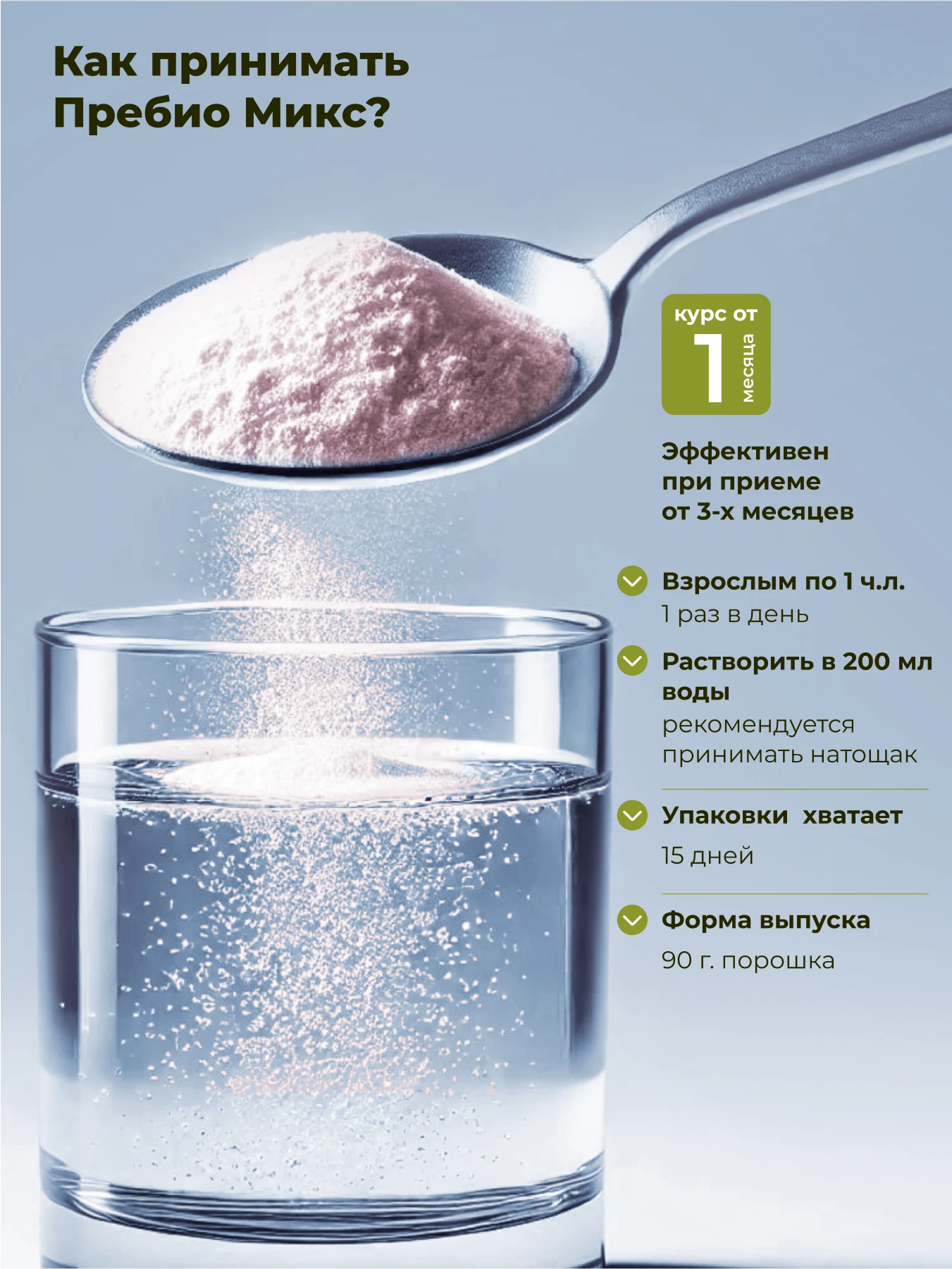 Взрослым принимать 6 г порошка (1 чайная ложка с горкой)
