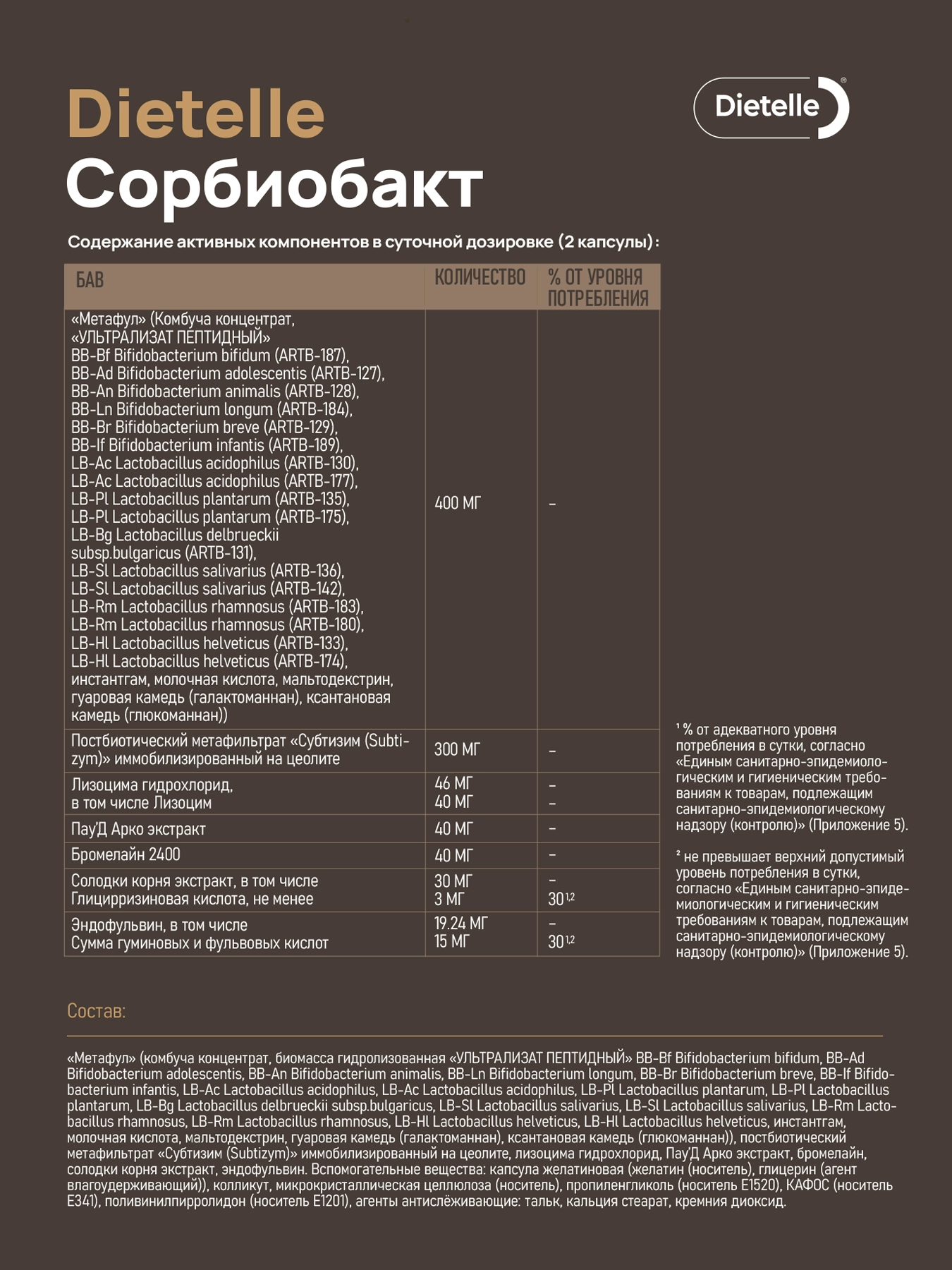 Сорбиобакт не содержит живых бактерий — это максимально безопасная формула, подходящая для приёма даже на фоне антибиотиков.