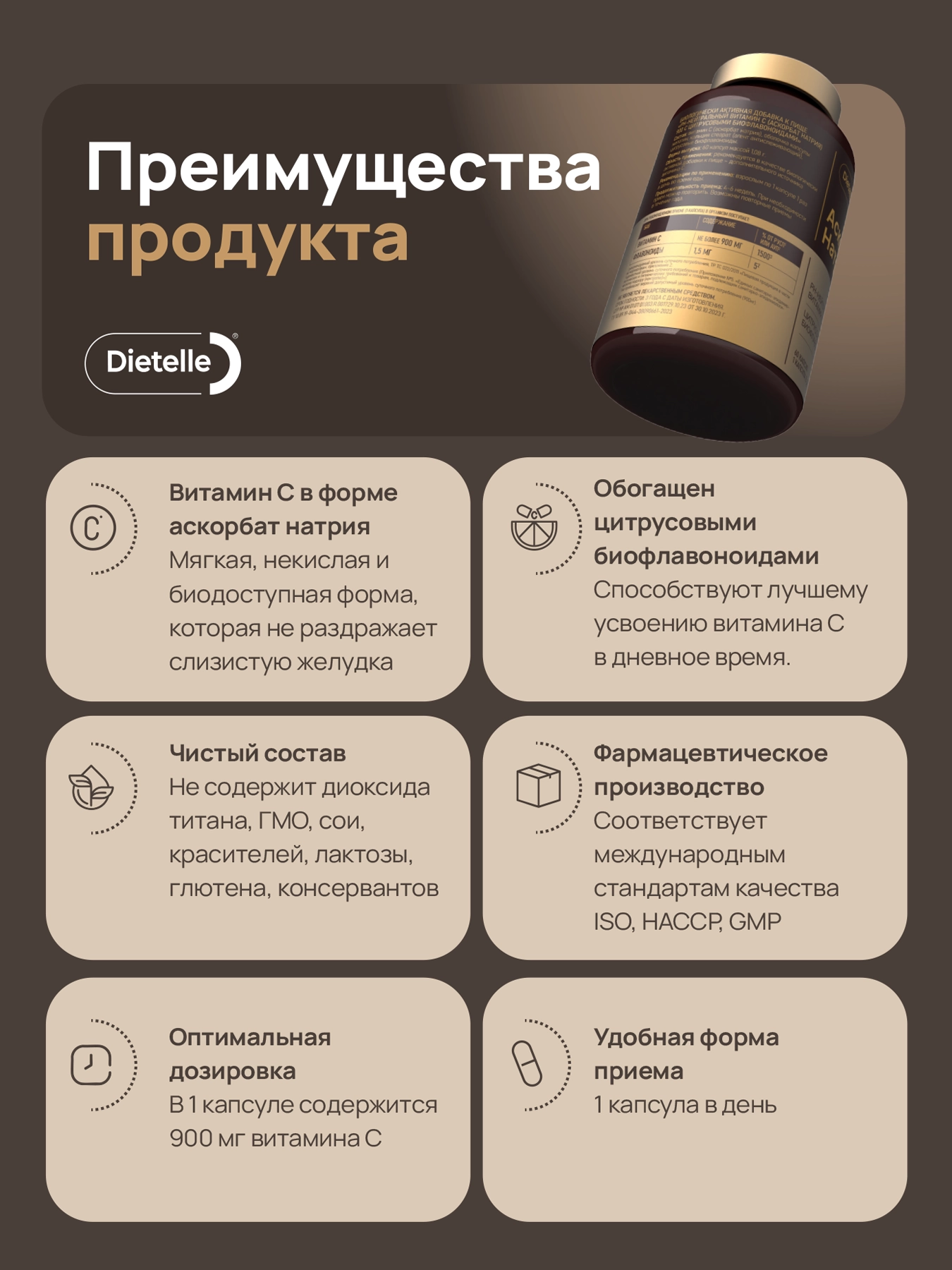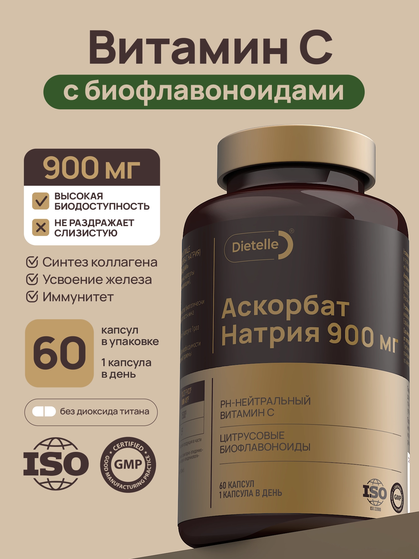 В 1 капсуле содержится 900 мг витамина С