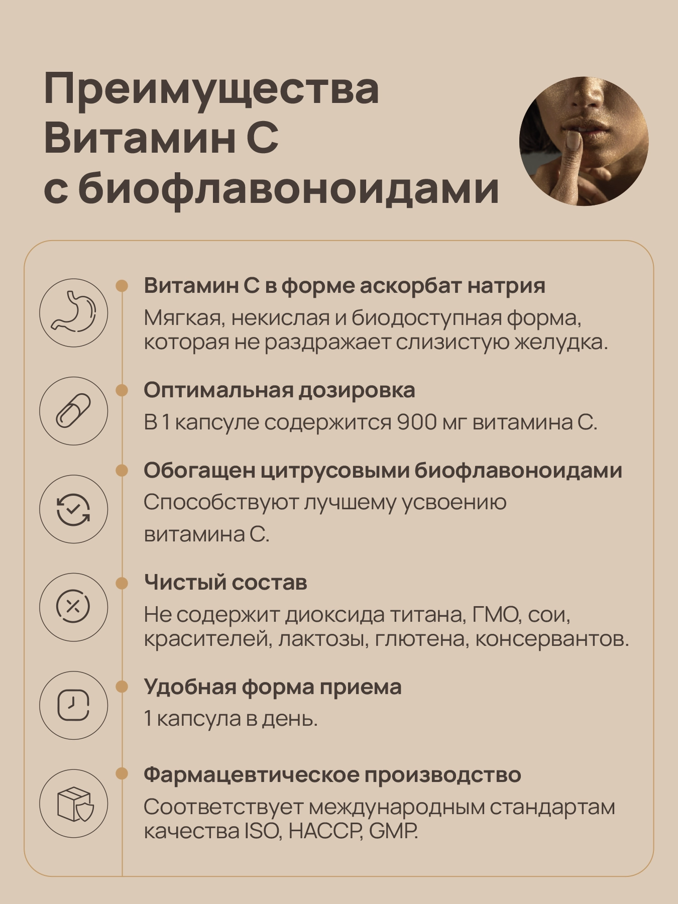 Не содержит диоксида титана, ГМО, сои, красителей, лактозы, глютена, консервантов